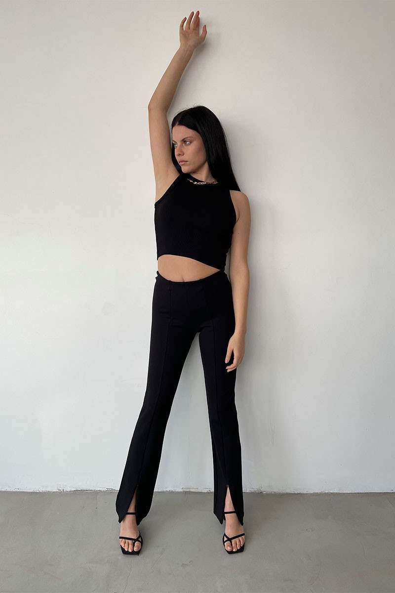 Legging con corte en el centro y abertura de la pierna, pretina elasticada