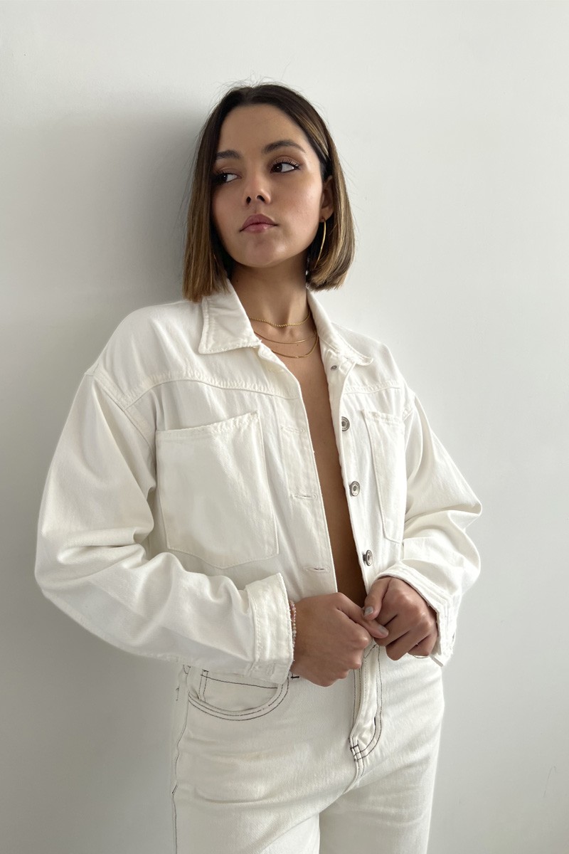 Nuestra Casaca Jean Crop es una prenda de vestir de estilo contemporáneo que toma inspiración de las chaquetas de mezclilla clásicas,pero se caracteriza por su longitud más corta y su diseño ceñido. CARACTERISTICAS DE LA PRENDA Casaca Jean rigida con bolsillos delanteros, botones y mangas largas . INFO Diseño y producción 100% peruana. COMPOSICIÓN 100% denim CUIDADOS Lavado a mano No usar secadora Secado en sombra No usar lejía