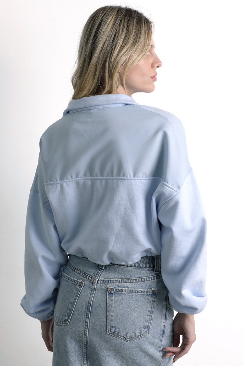 Sudadera con pretina en cintura regulable y cierre con abertura en v en la parte del cuello.