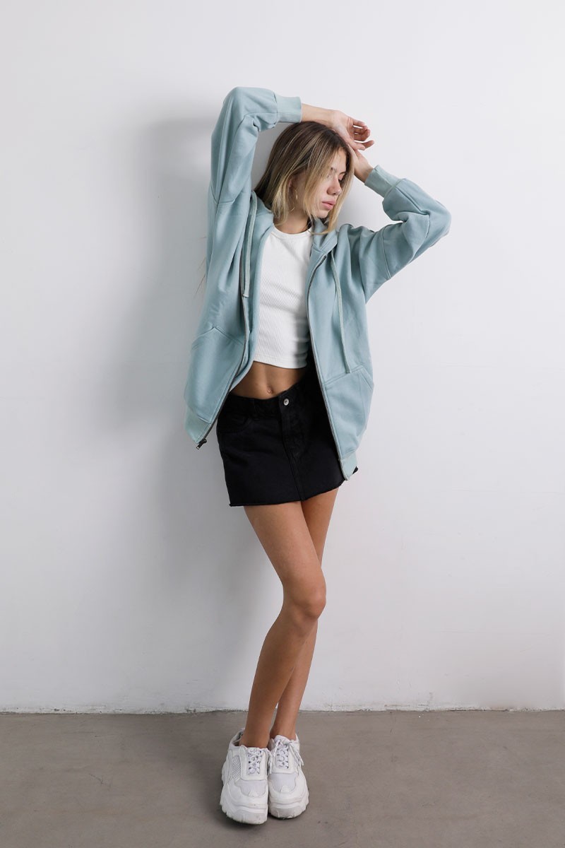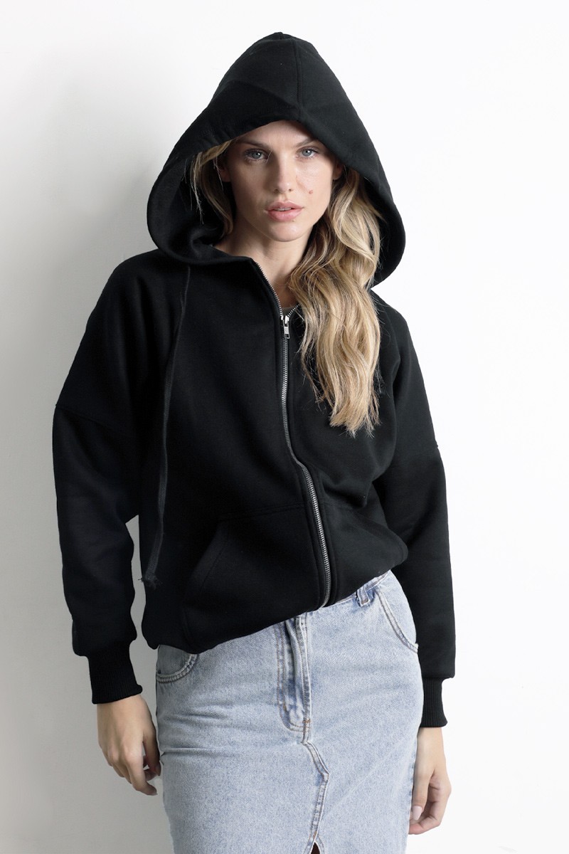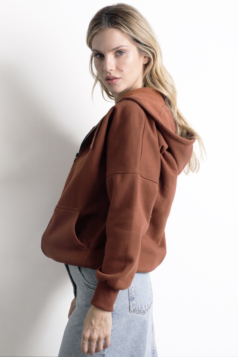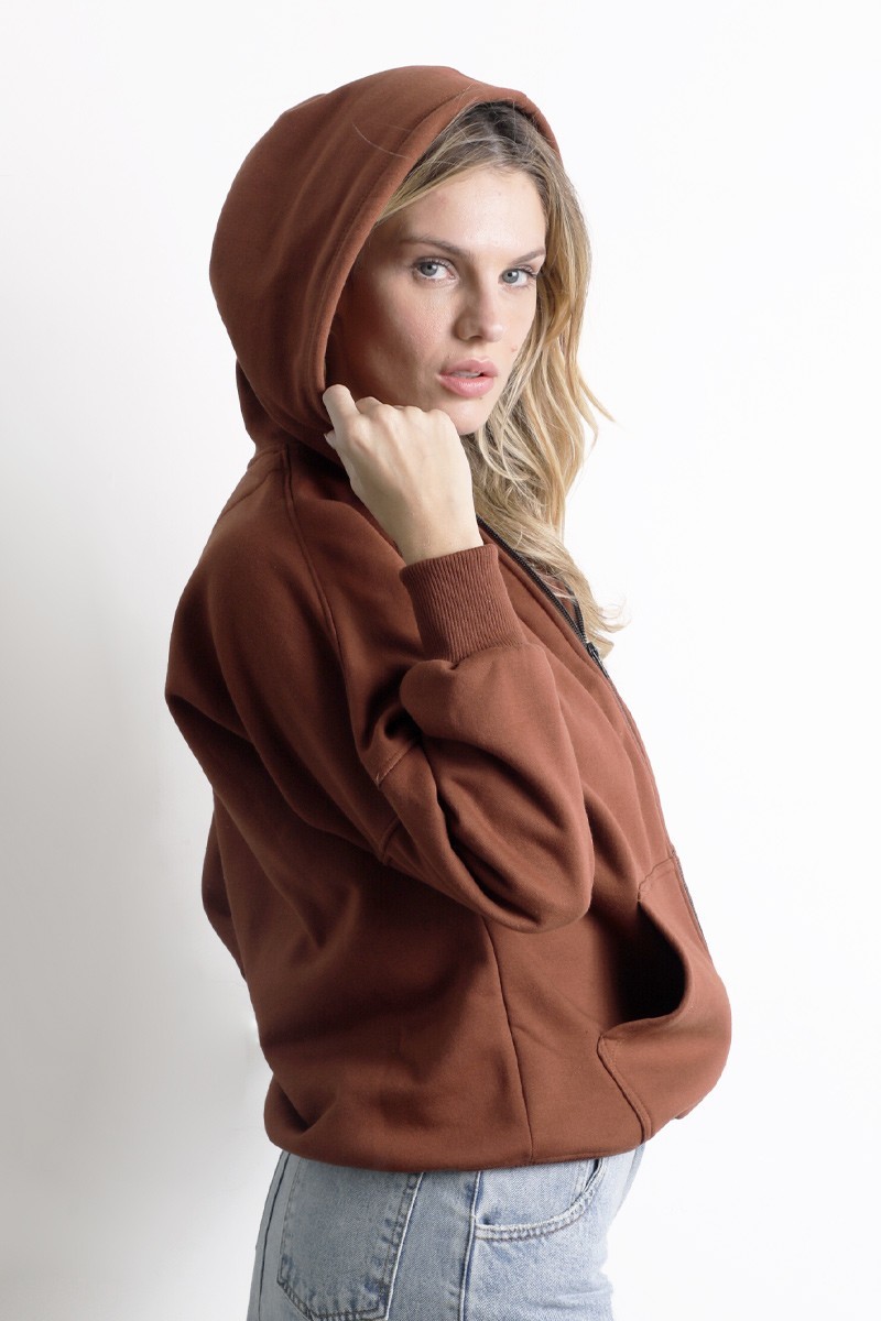 Para los dias de frio, esta sudadera es perfecta para ti, puedes usarla abierta o cerrada y armar todo tipo de look. Caracteristicas de la prenda:: Sudadera con capcuha, con cierre frontal con cremallera, bolsillos gemelos y cordon ajustable en capucha. INFO: Diseño y producción 100% peruana. La modelo mide 1.73cm y usa talla S. Composición: 85% cotton 15% poliéster