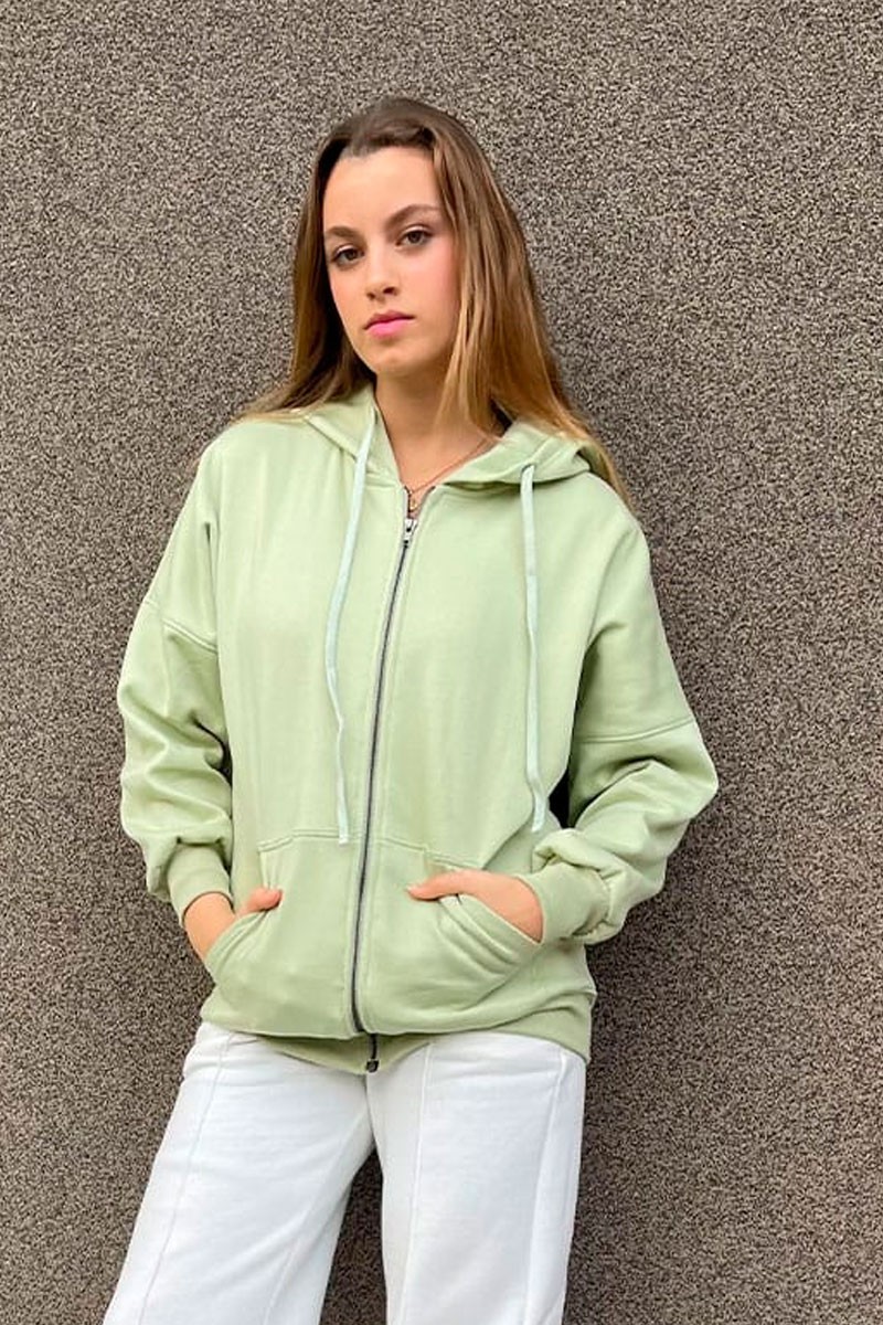 Sudadera con capucha, con cierre frontal con cremallera, bolsillos gemelos y cordon ajustable en capucha.