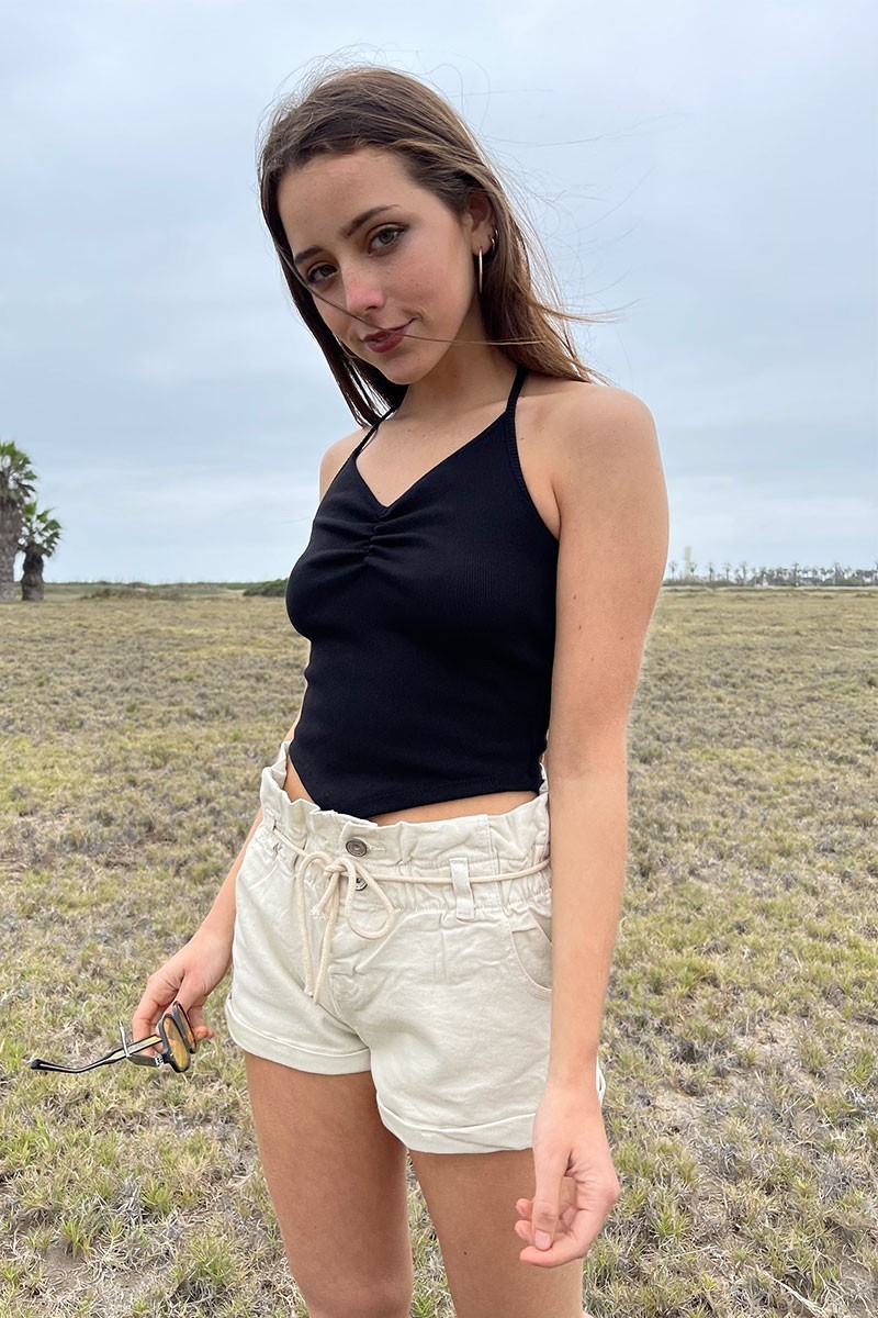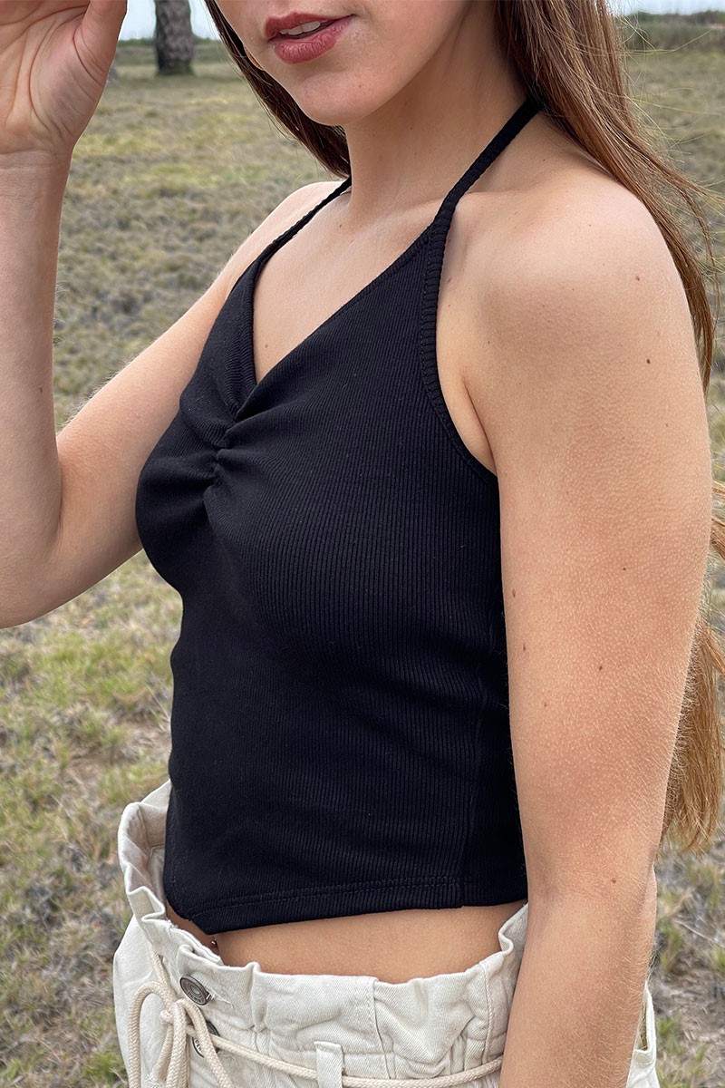 Top rib con tiras para cuello halter