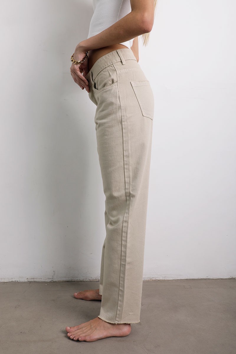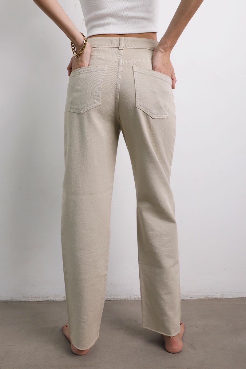 Jean mom con dos bolsillos en delantero y espalda con detalle de basta cortada. *Recuerda que las medidas pueden variar +/- 1.5cm