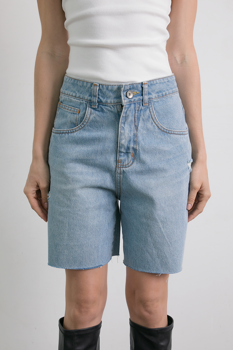 Short Jean Biker largo, con bolsillos delanteros y traseros.