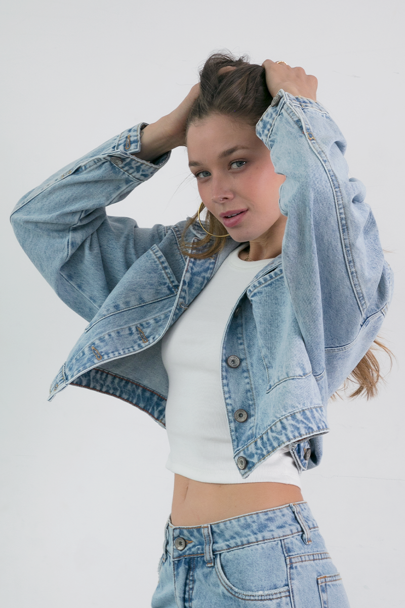 Nuestra Casaca Jean Crop es una prenda de vestir de estilo contemporáneo que toma inspiración de las chaquetas de mezclilla clásicas,pero se caracteriza por su longitud más corta y su diseño ceñido. CARACTERISTICAS DE LA PRENDA Casaca Jean rigida con bolsillos delanteros, botones y mangas largas . INFO Diseño y producción 100% peruana. COMPOSICIÓN 100% denim CUIDADOS Lavado a mano No usar secadora Secado en sombra No usar lejía