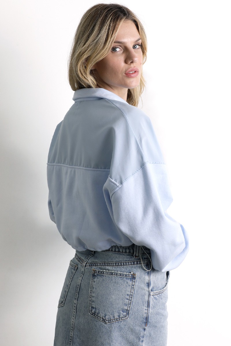 Sudadera con pretina en cintura regulable y cierre con abertura en v en la parte del cuello.