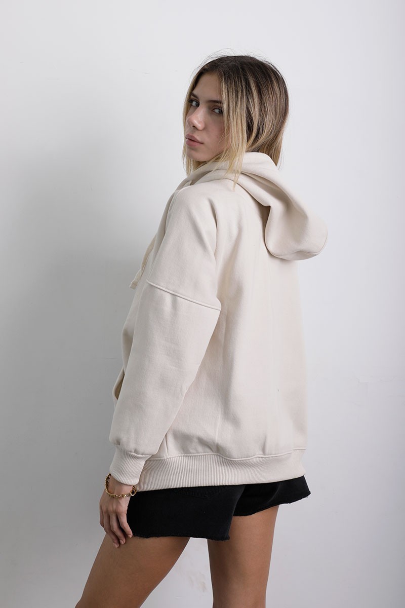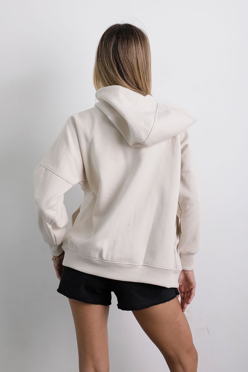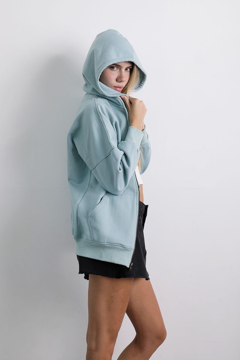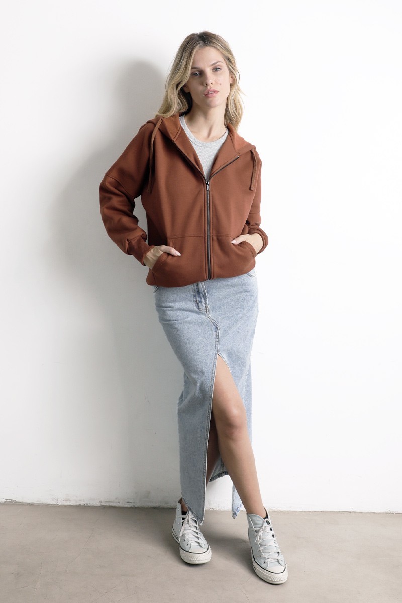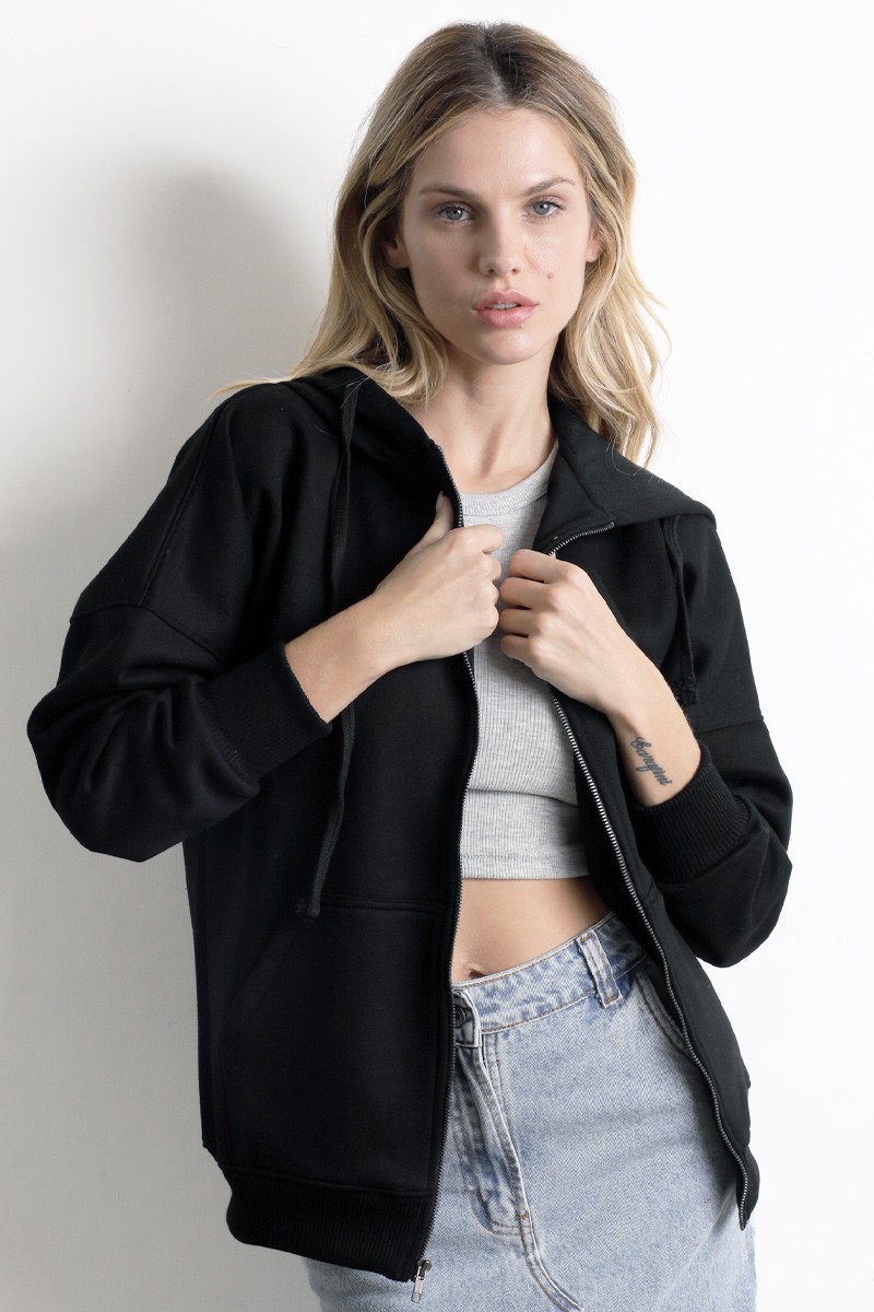 Para los dias de frio, esta sudadera es perfecta para ti, puedes usarla abierta o cerrada y armar todo tipo de look. Caracteristicas de la prenda:: Sudadera con capcuha, con cierre frontal con cremallera, bolsillos gemelos y cordon ajustable en capucha. INFO: Diseño y producción 100% peruana. La modelo mide 1.73cm y usa talla S. Composición: 85% cotton 15% poliéster