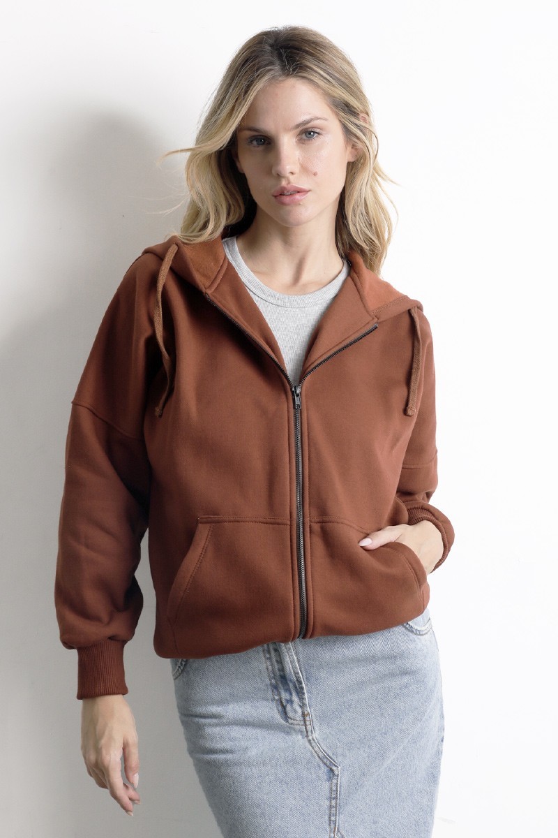 Sudadera con capucha, con cierre frontal con cremallera, bolsillos gemelos y cordon ajustable en capucha.