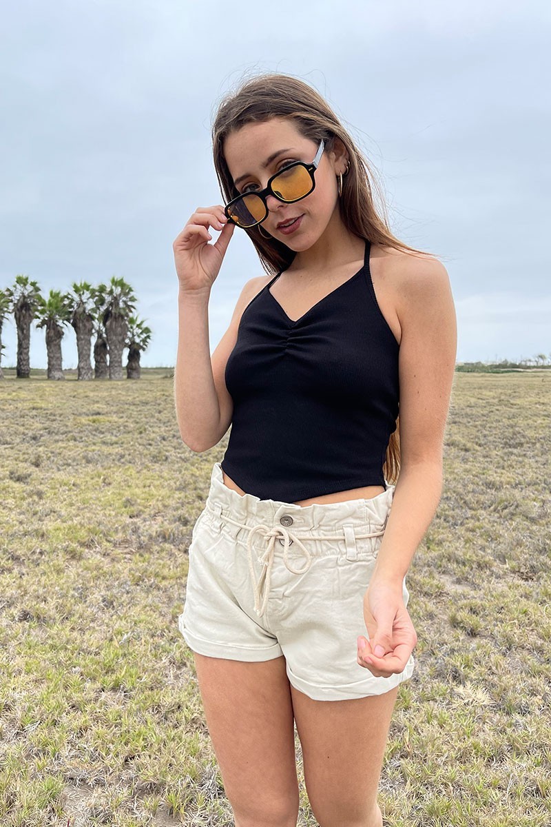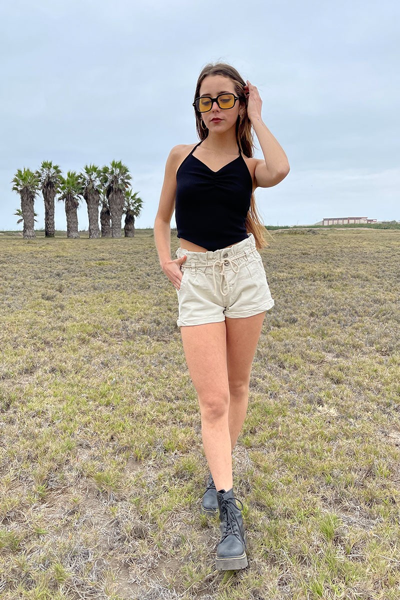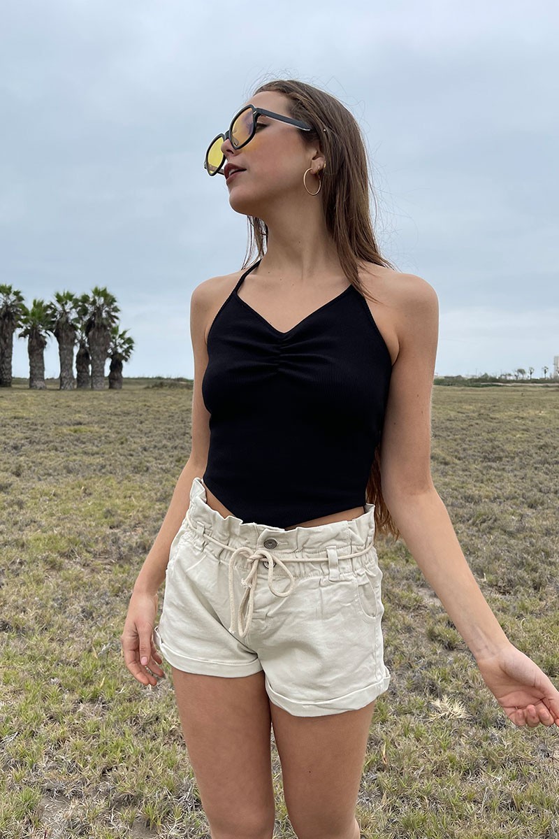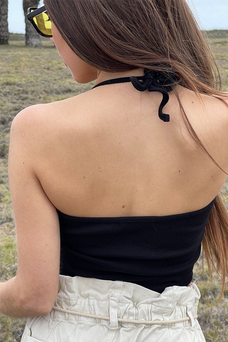 Top rib con tiras para cuello halter