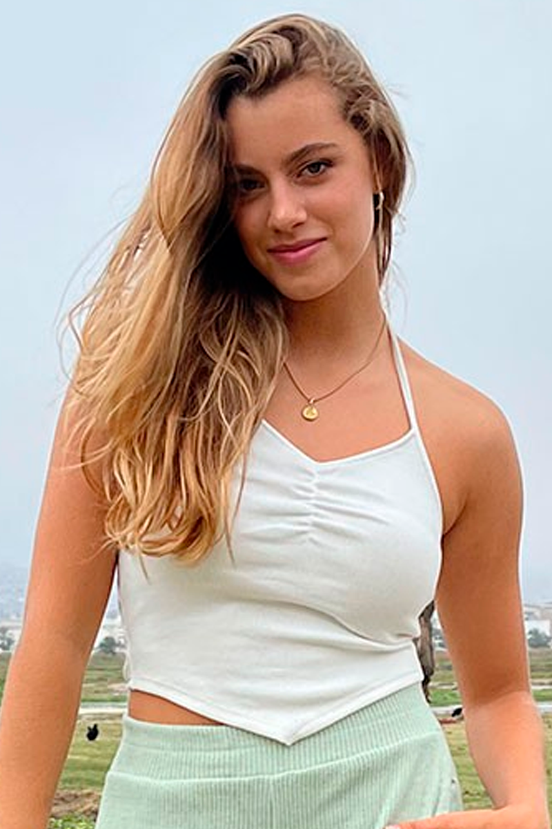 Nuestro Angel Top presenta un diseño halter de tiras que aporta un toque de sofisticación y sensualidad a tu estilo de verano. Estas tiras se cruzan elegantemente en la parte posterior, realzando tu figura y ofreciendo un ajuste personalizable.