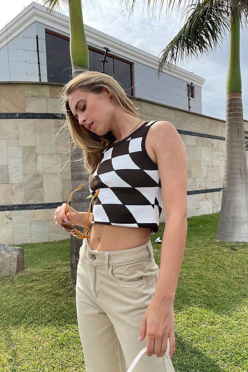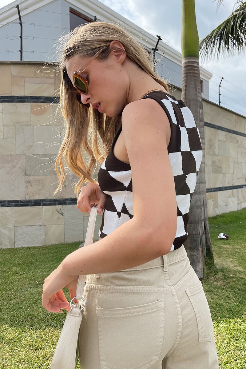Top de algodón con estampado de cuadros