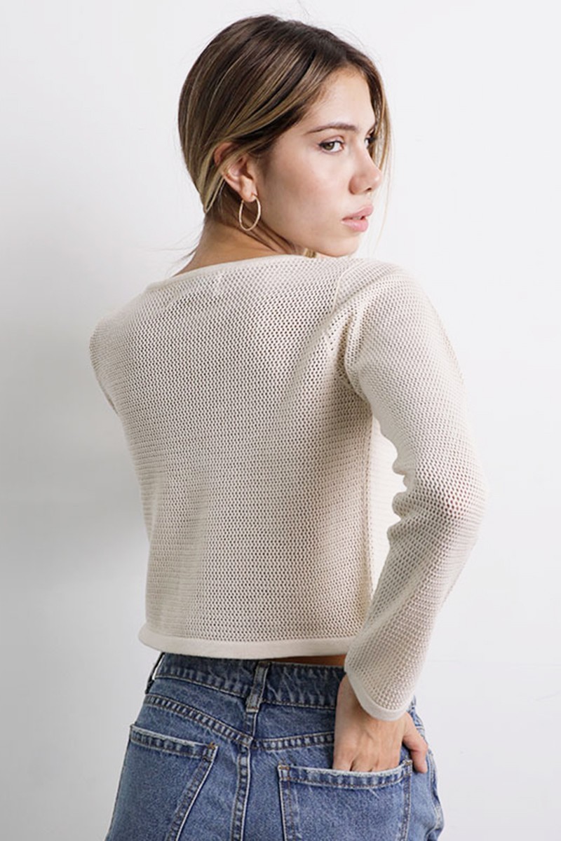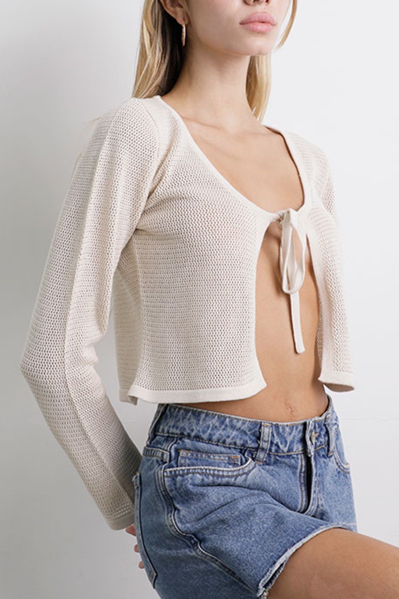 Top tejido crochet 100% hilo, cierre en delantero con tiras.