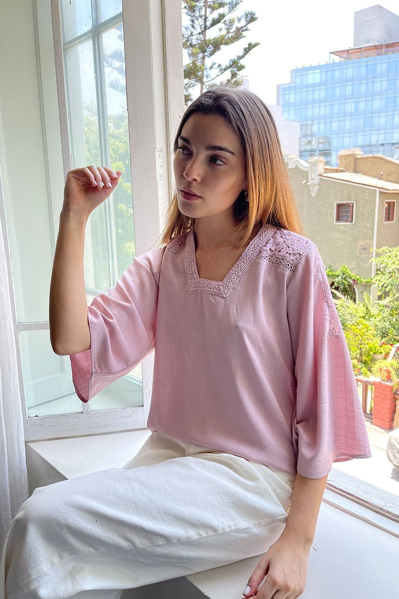 Blusa con detalle de graca y encaje