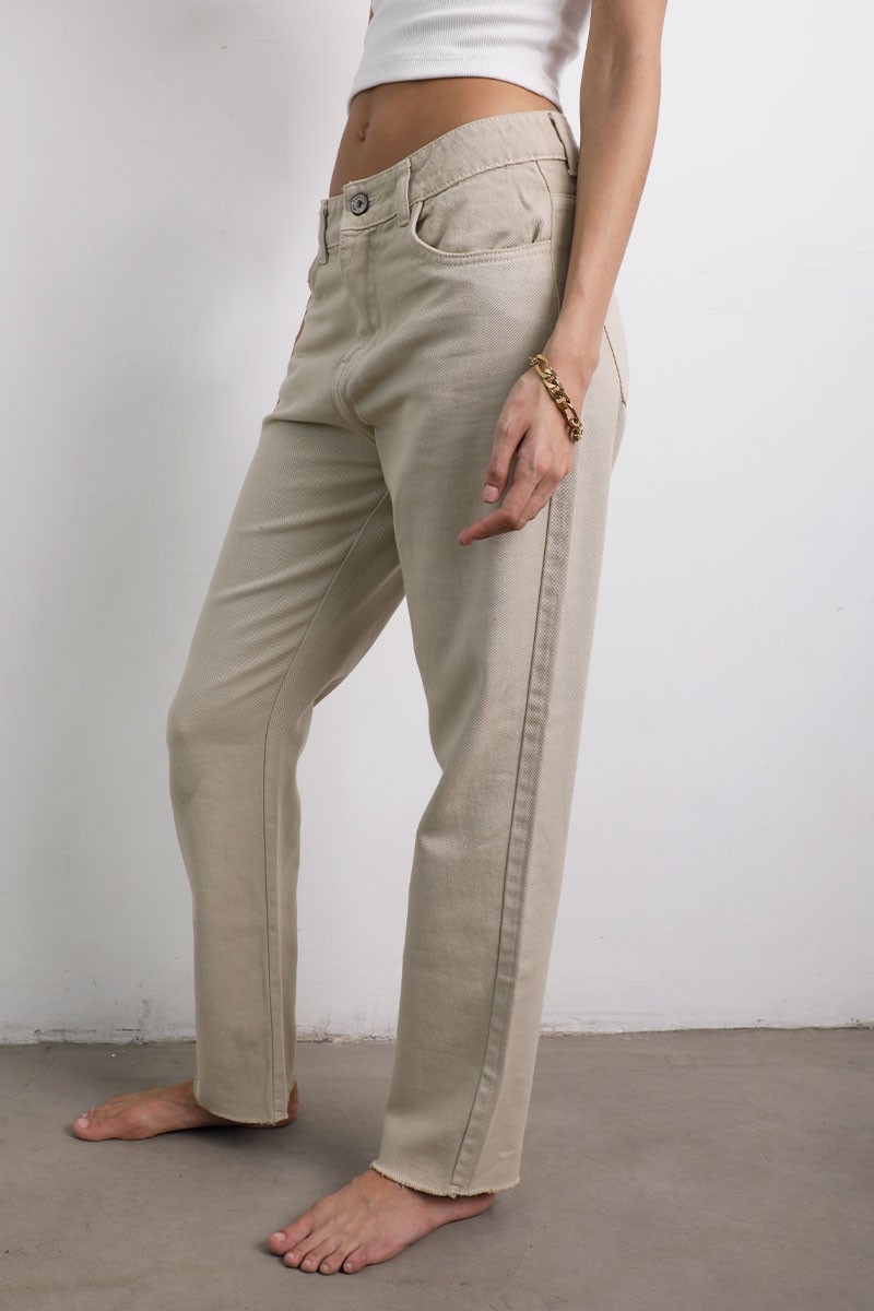 Jean mom con dos bolsillos en delantero y espalda con detalle de basta cortada. *Recuerda que las medidas pueden variar +/- 1.5cm